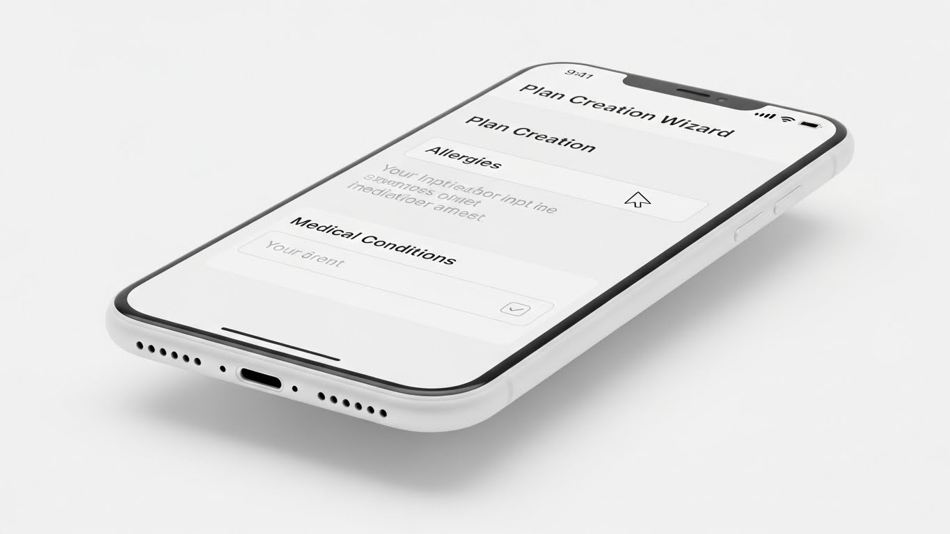 No es un chat genérico; es una herramienta que genera un borrador de plan nutricional completo en segundos. La interfaz utiliza Feedback Narrativo ("Analizando preferencias alimenticias...") para mostrar que la IA está "pensando" y generando confianza en el resultado .